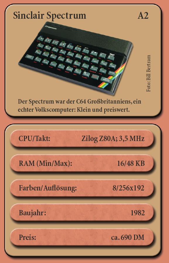 - Homecomputer: C64, Sinclair Spectrum, Atari 800 XL, Amstrad CPC 6128